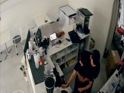 黑客破解某酒吧摄象头愉拍老板和兼职美女员工打佯在前台挑情躲进里面的库房