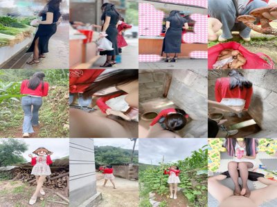 海【长腿女儿丽丽】带高挑端庄长腿女儿回农村老家玩,穿着黑丝高跟去买菜,